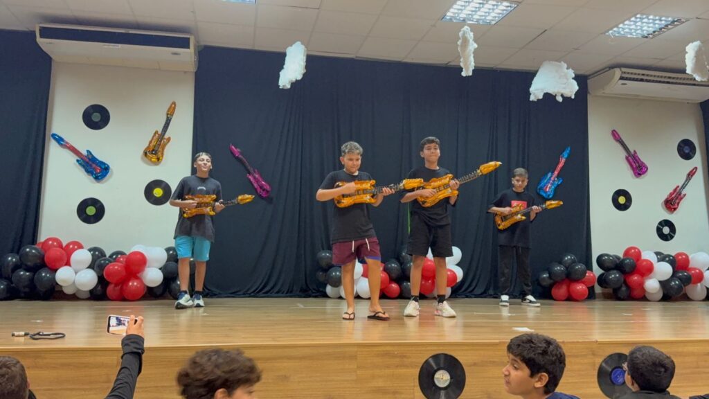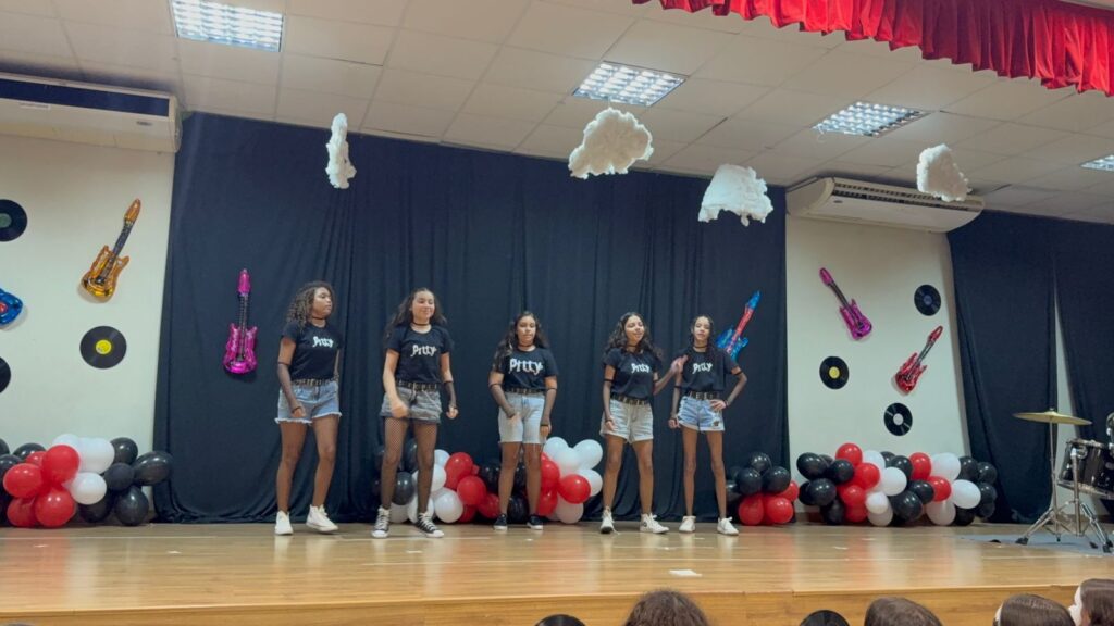 Durante o espetáculo, os alunos subiram ao palco com performances que uniram canto, coreografias, dramatizações e elementos cênicos cuidadosamente preparados ao longo das aulas. A construção das apresentações envolveu estudos sobre artistas e bandas, compreensão de letras em inglês, prática de pronúncia, exploração de ritmos e expressão corporal — habilidades desenvolvidas dentro do Programa Bilíngue, que tem como objetivo integrar o aprendizado da língua inglesa a experiências reais e contextualizadas.